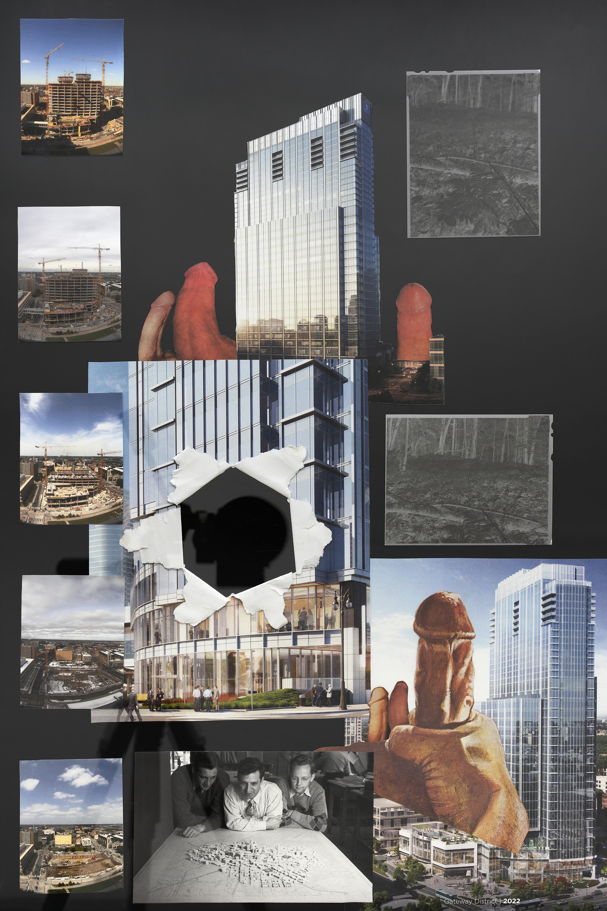 Drawing from histories of gay neighborhoods in Minneapolis and his father’s forty year career in framing houses in Greater Minnesota, photographer Jaysen Hohlen is developing a body of artwork spanning across multiple photographic genres in order to produce thorough investigations into class, sexual privacy and land use. His research pulls from two sites: the revitalization project of the Minneapolis Gateway District in the 1950s-60s, and current housing projects in Crow Wing County where his family resides and works.